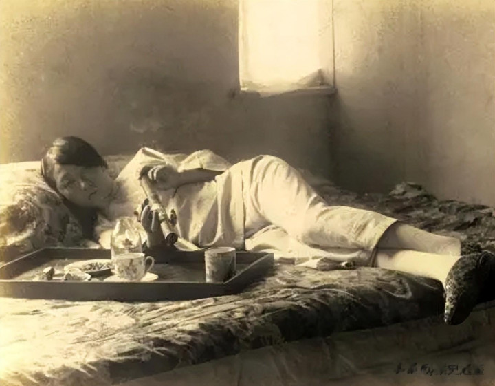 她的丈夫常年吸食鸦片,整个人被烟土掏空了身子。